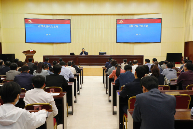 开班式后,培训班邀请国防大学政治学院孙力教授作了题为《中国式现代化之路》专题报告。据悉,此次专题培训班将围绕党的二十大精神学习、党建引领高质量发展、高等教育战略布局展望等内容,共开展10次集中培训。