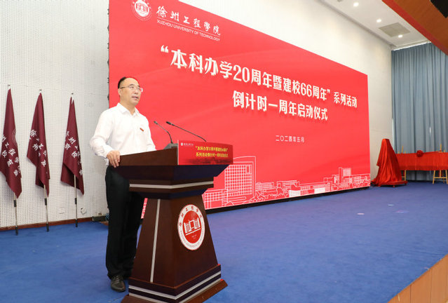 薪火相传庆华诞,赓续初心展新篇。5月18日上午,徐州工程学院“本科办学20周年暨建校66周年”系列活动倒计时一周年启动仪式在中心校区逸夫图书馆报告厅隆重举行。学校老领导肖俊、沈超,校党委书记刘洋、校长张农、副校长曹杰、姜慧、黄传辉,徐州市文化广电和旅游局总工程师李扬,俄方教师代表、离退休教师代表、各地校友代表,学校各部门、各学院主要负责同志和师生代表共300余人参加活动。肖俊、沈超、刘洋、张农共同为倒计时牌揭牌。徐州工程学院“本科办学20周年暨建校66周年”系列活动正式进入一周年倒计时。 仪式由校党委副书记李苏北主持。