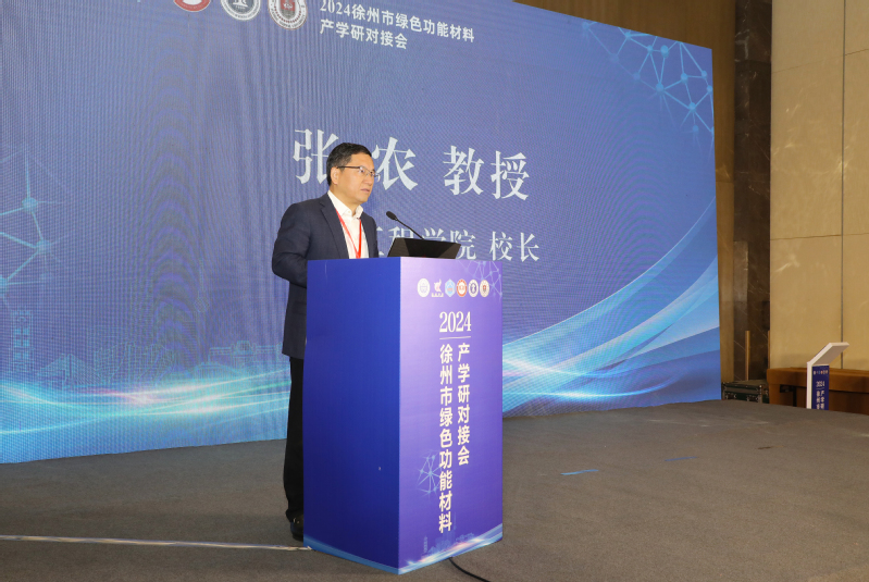 张农校长在致辞中对各位专家学者的到来表示欢迎和感谢。他简要介绍了我校事业发展情况。他说,本次活动充分发挥化学化工在绿色功能材料领域的人才、技术优势,赋能支持新材料领域产业创新发展,持续高质量推动淮海经济区中心城市建设的具体实践。通过专家学者与参会企业的深入交流,必将有力推动徐州市“343”产业集群发展,为相关企业提供专、新、特的前沿成果,也对我校专业建设具有积极促进作用。他希望与会专家学者,以前沿视角帮助企业把脉问诊、提供真知灼见,助力徐州经济社会高质量发展。