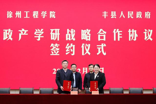 会上,谭文轶副校长与黄亚珍常务副县长代表双方签署了战略合作协议。材化学院、土木学院、食品学院、电控学院、机电学院分别与江苏极易新材料有限公司、徐州振丰新型墙体材料有限公司、江苏君乐宝乳业有限公司、江苏冠华精密工业股份有限公司、徐州南普机电有限公司签订了院企合作协议。下一步,校地双方将充分发挥各自优势,在既有合作基础上进一步深化校地合作,通过联建人才素质提升机制、促进大学生实习与就业、共建科技创新平台载体、开展核心技术联合攻关、推动科研成果转移转化,大力提升丰县产业发展能级,全力助推徐州工程学院“两个创建”,为培育发展区域新质生产力提供有力支撑。